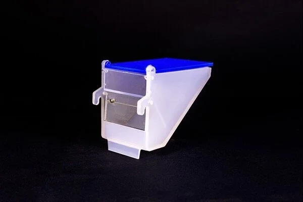 Es ist das einzige Vogelfutterspender auf dem Markt, das kein Futter verschwendet, sauber ist und nicht ausgeblasen werden muss.